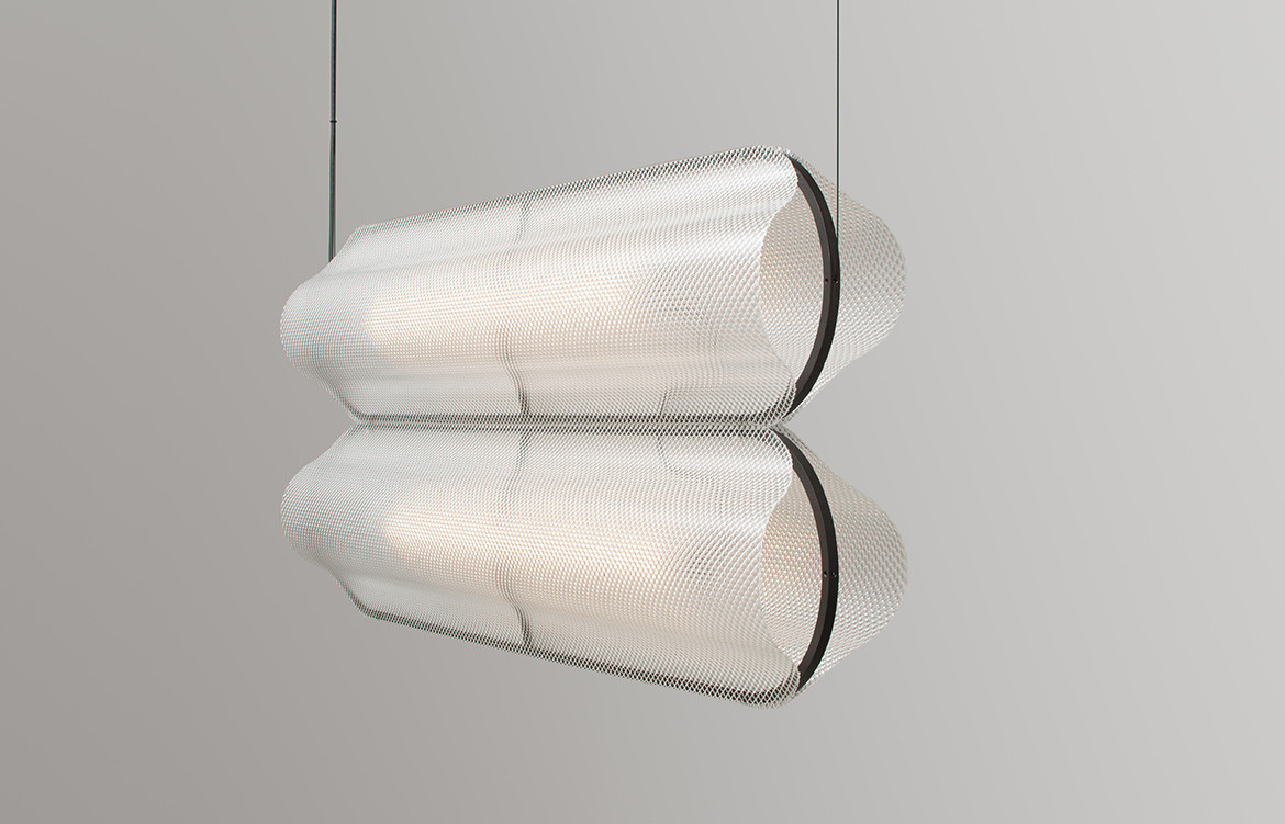 Подобно WireRing, который Formafantasma разработал два года назад для Flos, Wireline призван сделать кабель питания конструктивной особенностью. Здесь кабели заключены в ремни, которые напоминают гигантские резиновые ленты. Светодиодная трубка подвешена между ними.