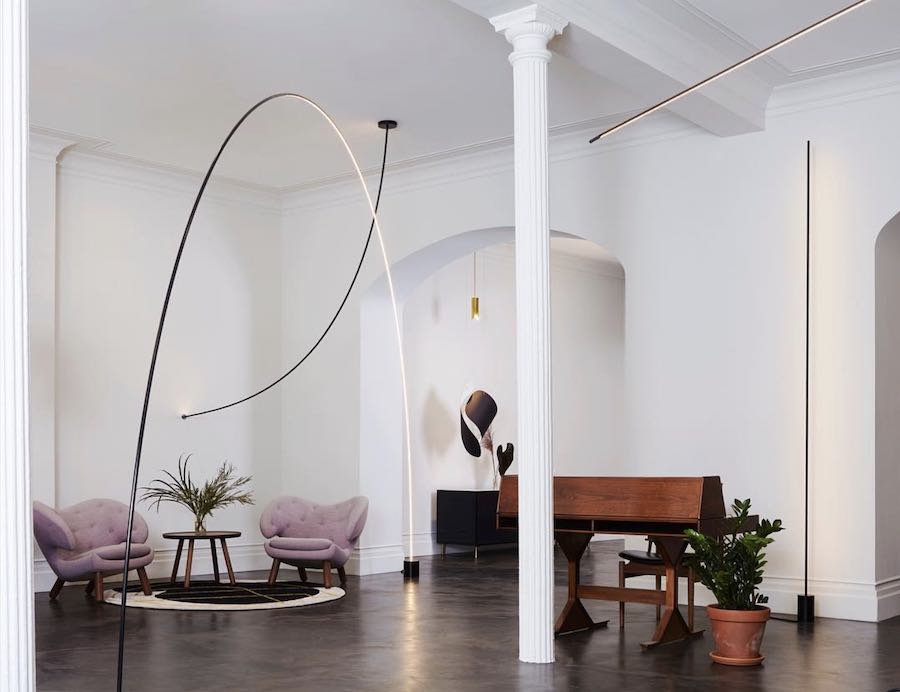 Разработанный, чтобы сделать освещение центральным элементом любой комнаты, Pole создает большие кривые, охватывающие стены, потолки и полы. Разработанный лондонским дизайнером Филиппом Малуином, свет является прочным и гибким, что означает, что он движется при прикосновении, но в тоже время не слишком хрупкий.