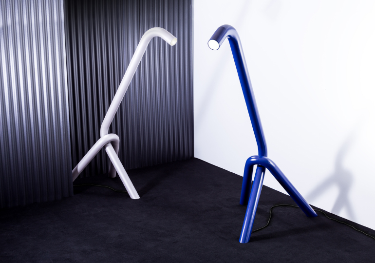 Трубчатая стальная напольная лампа, доступная в синем, красном или матовом серебре, очаровывает, как последнее творение Германа Августа Вейзенеггера (Hermann August Weizenegger) для немецкого бренда. Его удлиненная шея имитирует птицу, в честь которой лампа была названа.