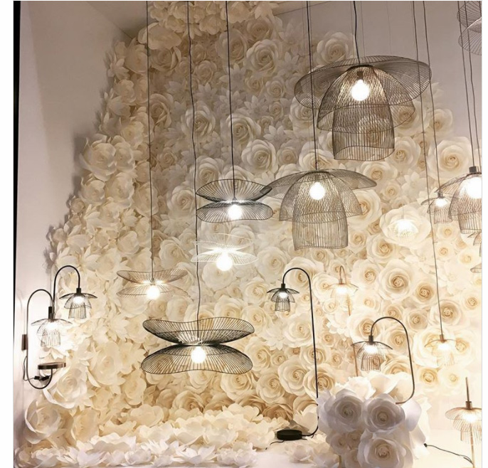 Французская осветительная компания Forestier продемонстрировала свои последние подвесные светильники на Maison & Objet 2018. И в то время как декоративные предметы были привлекательными сами по себе - это были белые-белые бумажные розы, светильники, с которыми они были показаны, действительно заставляли сделать паузу. Минимализм соответствует деталям, как в изделии, так и на стенде.