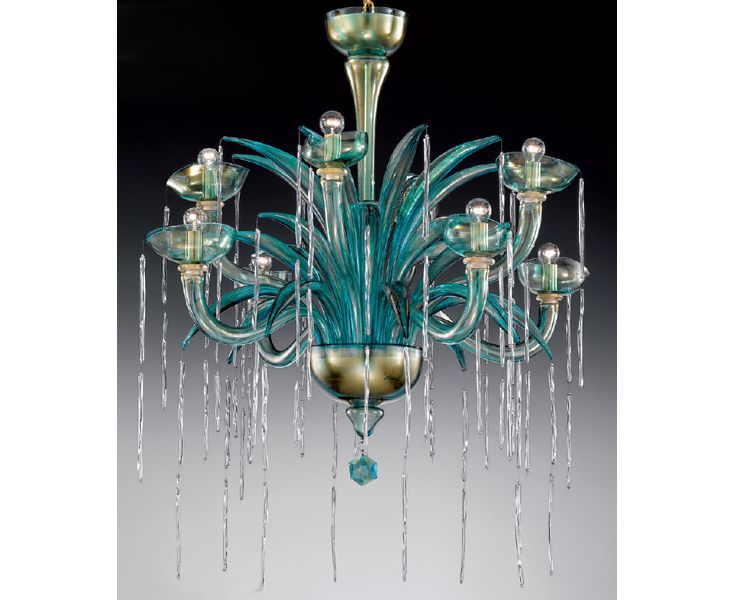 венецианское стекло прозрачного, аквамаринового и зеленого цветов с золотыми вкраплениями