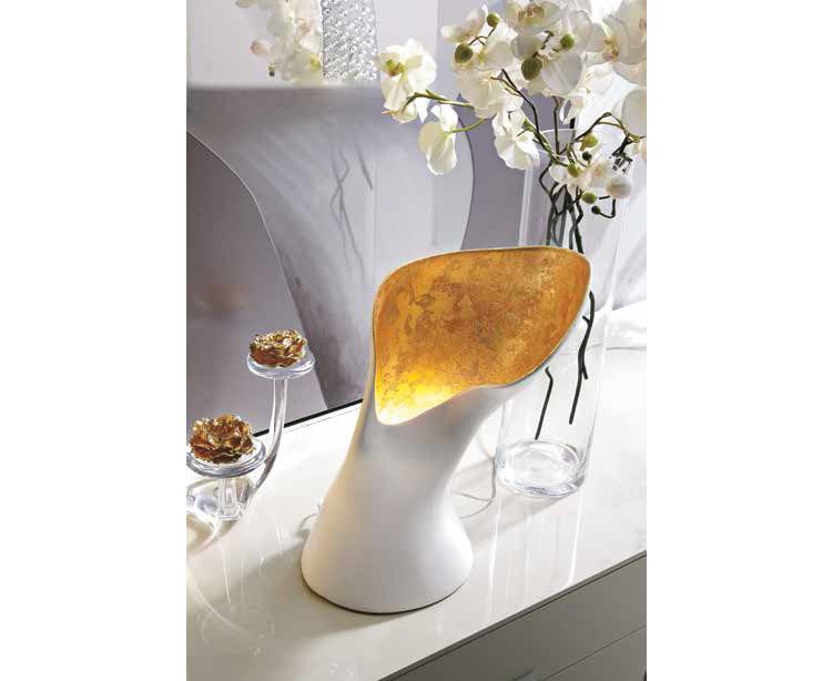 Настольная лампа, выполненная в современном стиле. Сделана из белой матовой керамики, а внутри украшена сусальном золотом.