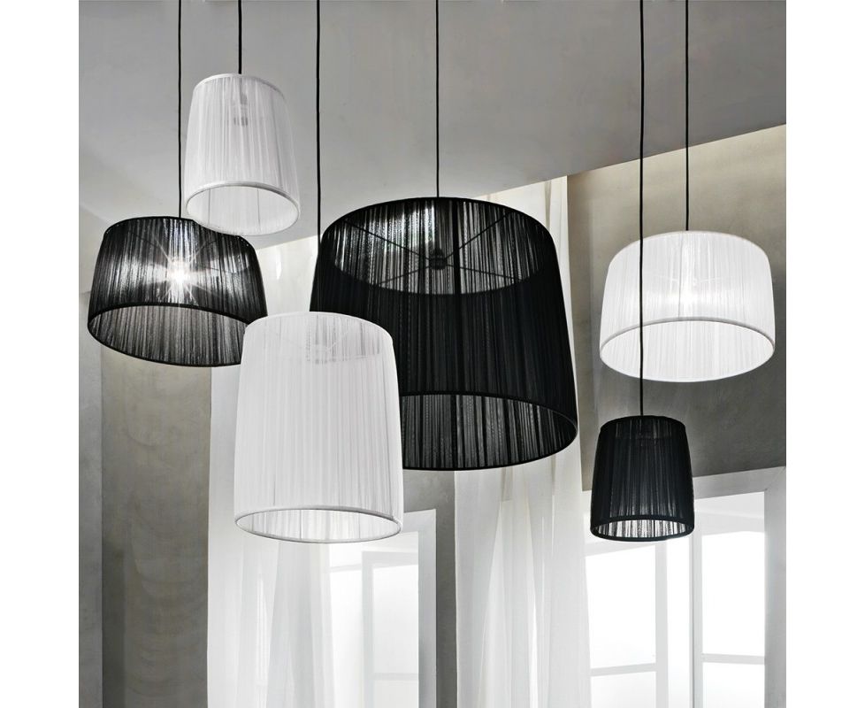 Подвесной светильник из органзы. Имеет коническую форму. Доступны два цвета (черный, белый) и разные размеры. Также Вы можете приобрести настенный светильник из этой коллекции.