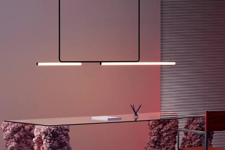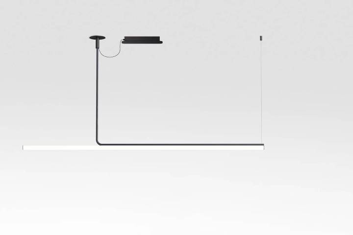 Его дизайн проистекает из трубчатой структуры с пологими линиями, которые прикрепляются к потолку, позволяя свету опускаться и мягко освещать любой тип помещений. Именно этот рассеянный свет заполняет пространство, добавляя красоты.