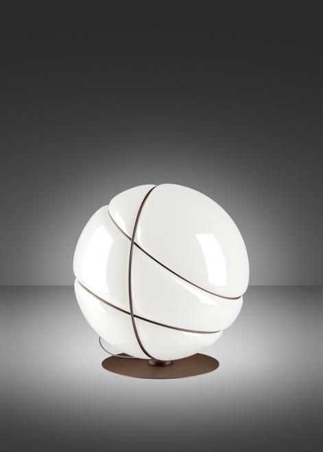 Эти три драгоценных металлических кольца, крепко прикрепленных друг к другу, содержат диффузор, который, благодаря кольцу, закрепленному посередине, подключен к опорному кабелю, также из металла. Коллекция Armilla имеет диаметр 36 см, представлена в подвесной версии и в виде настольного светильника. Диффузор выполнен из глянцевого белого стекла, выдутый на круглой пресс-форме, с вставленными металлическими кругами и деликатно заформованный литым стеклом в конце процесса. Кольца выполнены с полированной, золотой и хромированной отделкой. Электрификация осуществляется от сетевого напряжения для галогенных, флуоресцентных и светодиодных ламп.
