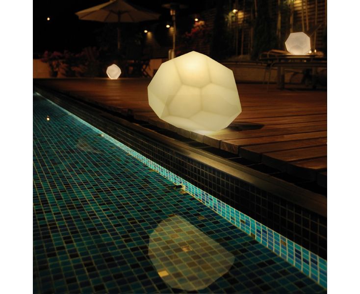 Светильник Asteroid представляет собой уникальную геометрическую форму, в которой невозможно найти две из двадцати четырех отдельных поверхности, и две одинаковые длины боков. В композиции это создает иллюзию различных форм. Светильник предлагается из прозрачного стекла или белого пластика, пластиковая версия подходит для использования на улице.