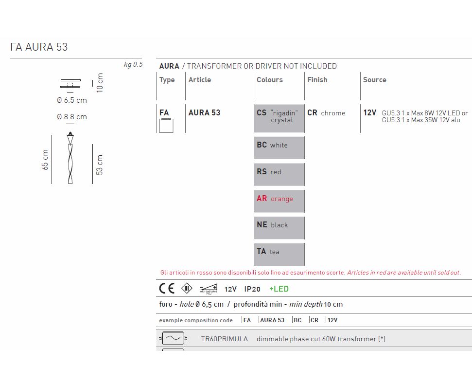 Встраиваемый в потолок светильник Axo Light Aura FA AURA 53