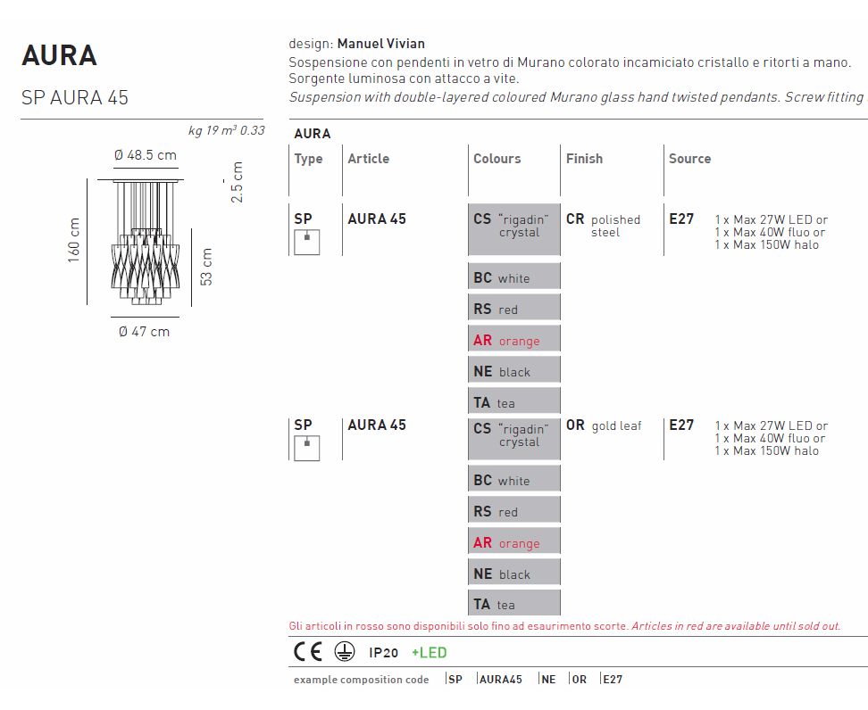 Подвесной светильник Axo Light Aura SP AURA 45