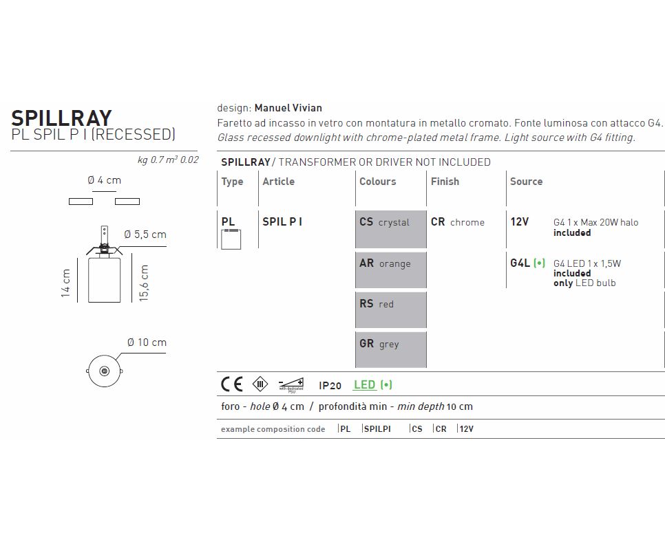 Потолочный светильник Axo Light SPILLRAY PL SPIL P I recessed