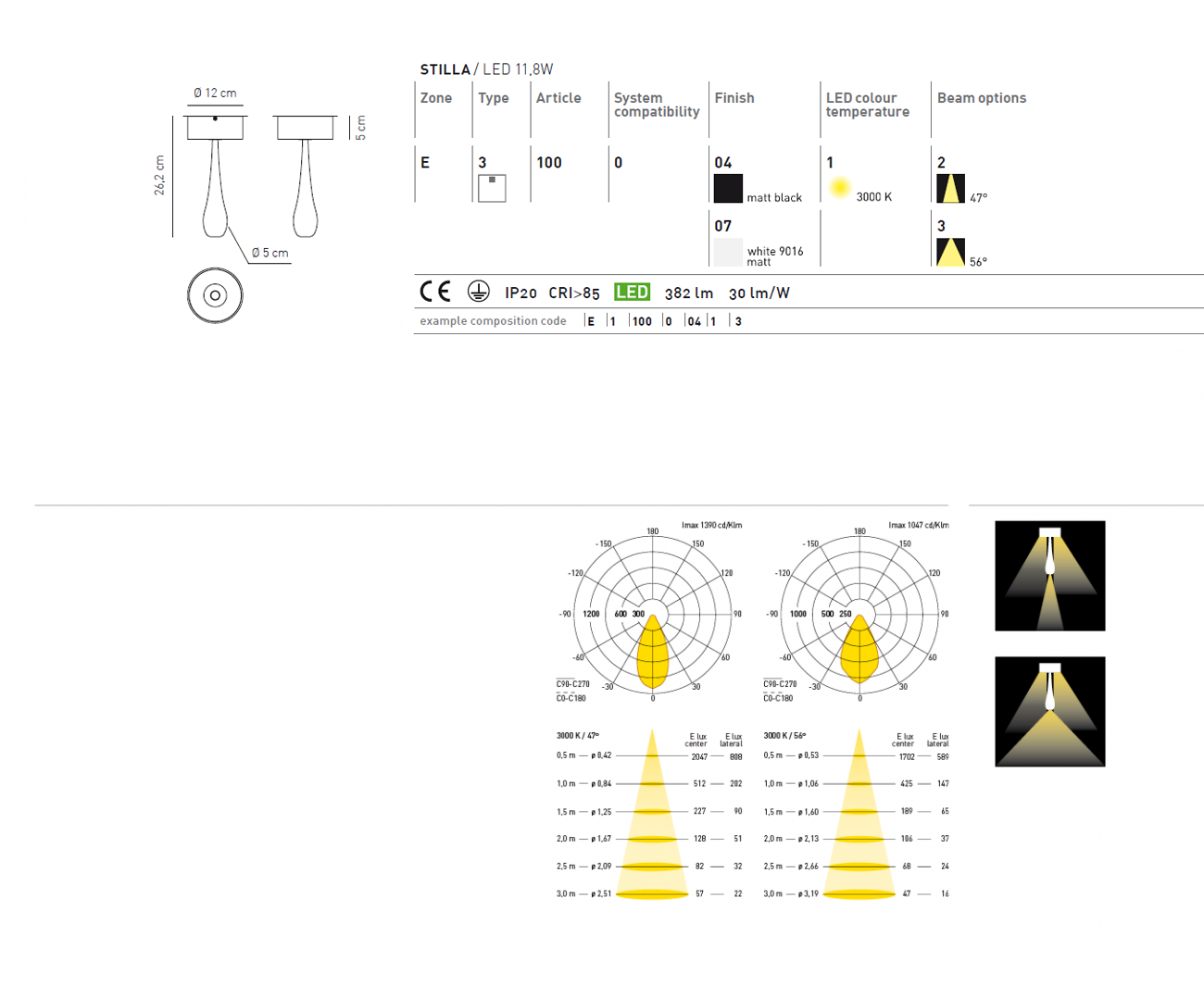 доступна версия в белом цвете E110000713, а также версии с пучком света 47 градусов: белого E110000712 и черного E110000412 цвета