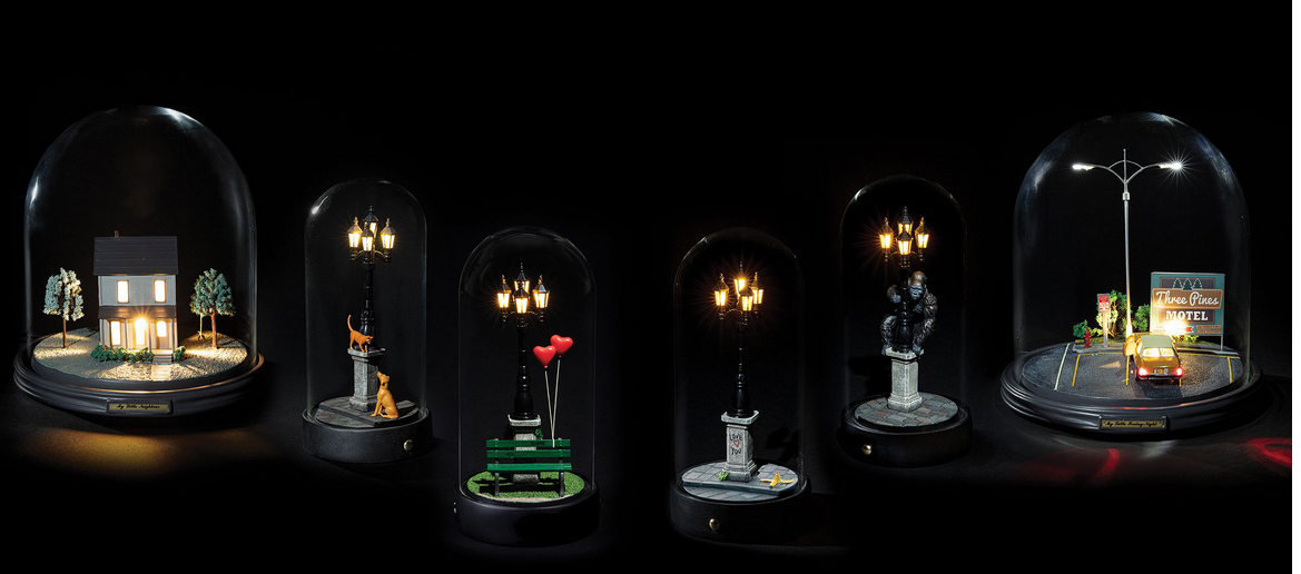 Сделанный полностью из смолы, My Little Evening до совершенства воспроизводит каждую деталь, оставляя каждому свободу воображать звуки и запахи вечной, романтичной живущей картины. Эстетика напоминает кинематографическую фотографию великих режиссеров триллеров прошлого, и каждое изображение захватывает кадр фильма из постоянно развивающегося сценария.