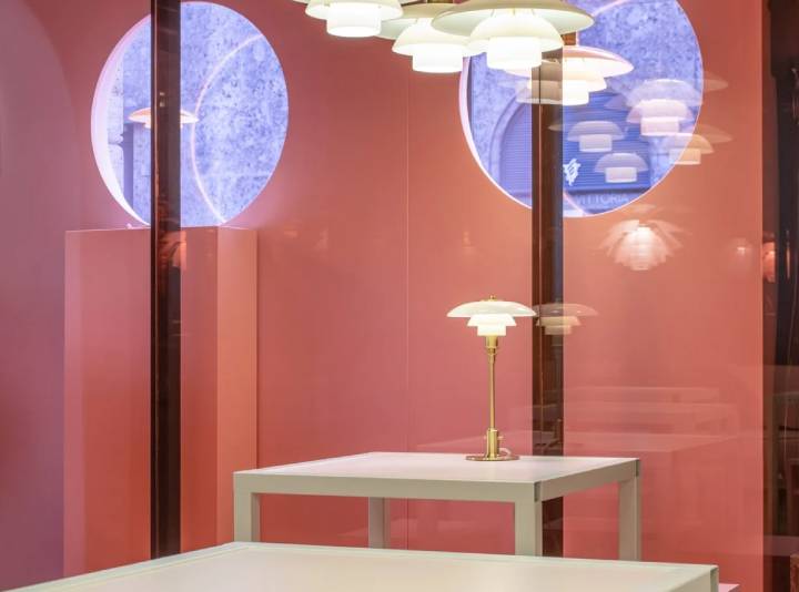 По случаю Миланской недели дизайна 2022 Louis Poulsen окрашивает в бледно-розовый цвет историческую кондитерскую Taveggia, расположенную по адресу Via Uberto Visconti di Modrone, 2. Знаменитое кафе превращается в инсталляцию, демонстрирующую как новую коллекцию PH Pale Rose, так и образцы культовых PH Artichoke и PH Septima. Все строго розовое!