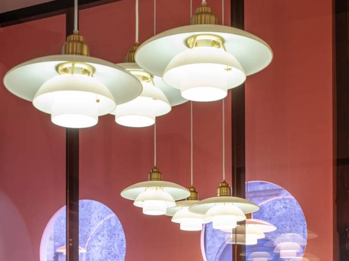 На Миланской неделе дизайна 2022 года культовые лампы PH в бледно-розовом исполнении освещают историческую кондитерскую Taveggia.