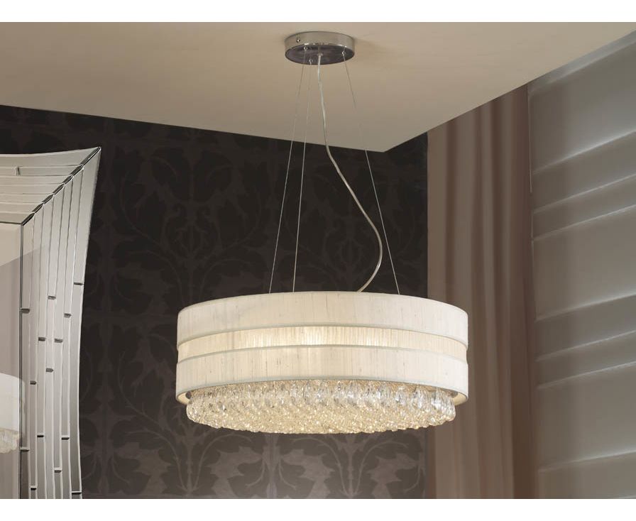 круглый абажур из шелковистой ткани с полупрозрачной полосой