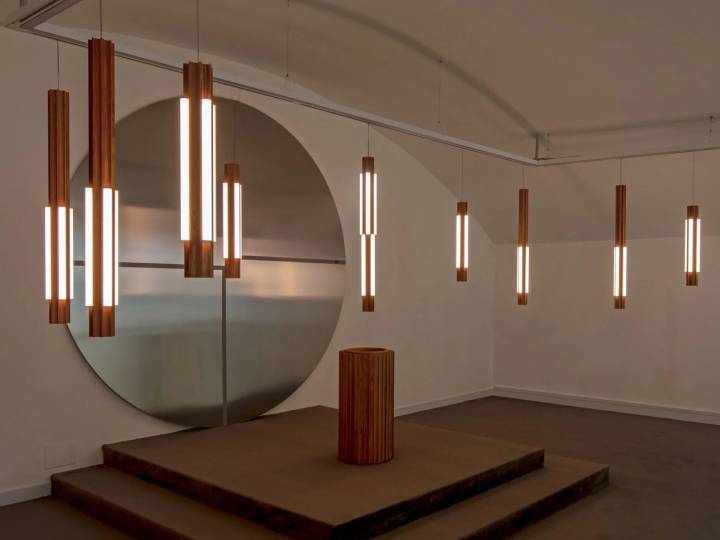 В следующем зале демонстрируется светильник в виде тонких подвесок - Altar, которые сочетают в себе подсвеченные трубы с гладким корпусом из резного дуба. Они организованы вокруг современного алтаря, где соответствующая резная дубовая купель обрамлена большим вертикальным диском из нержавеющей стали.