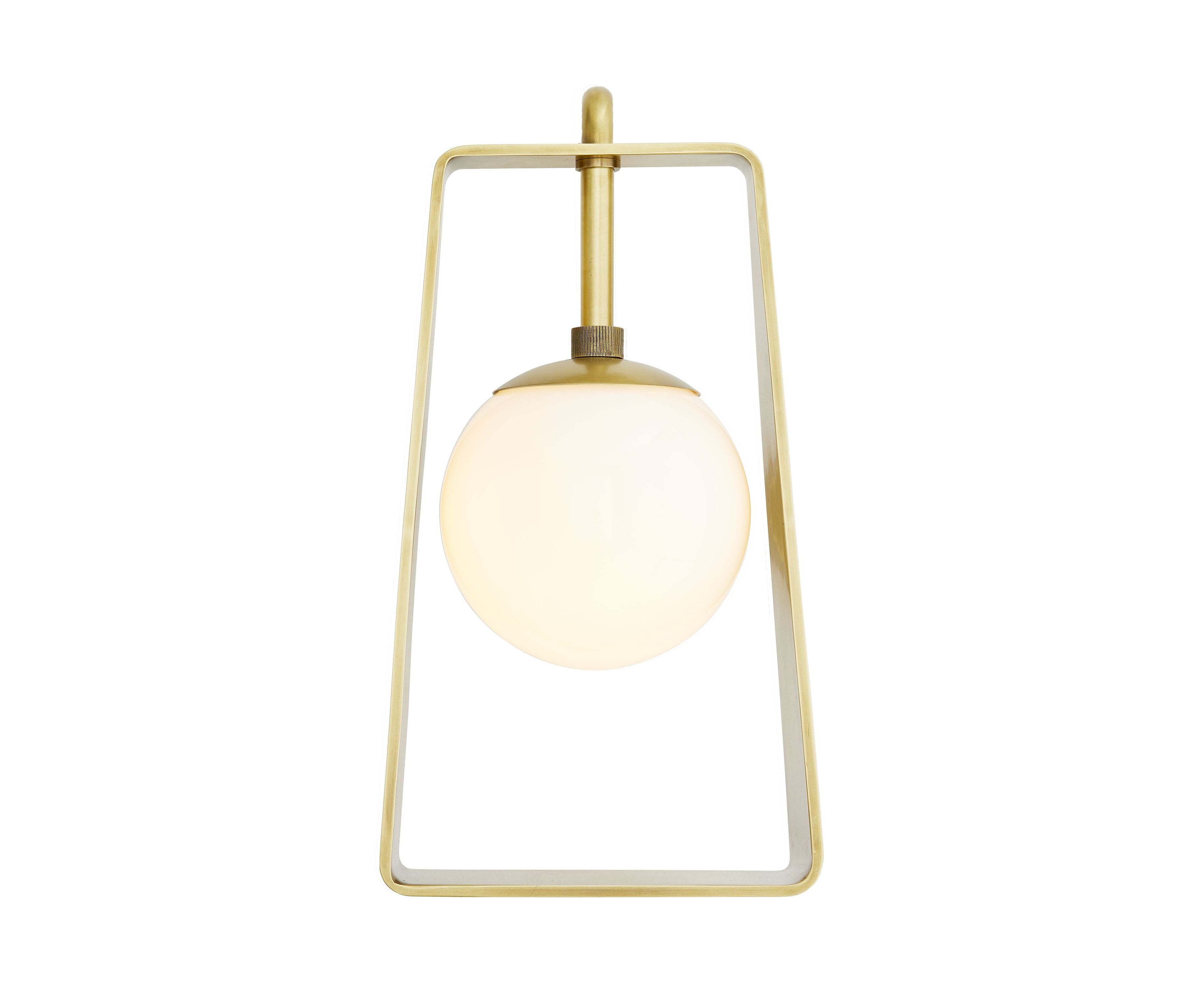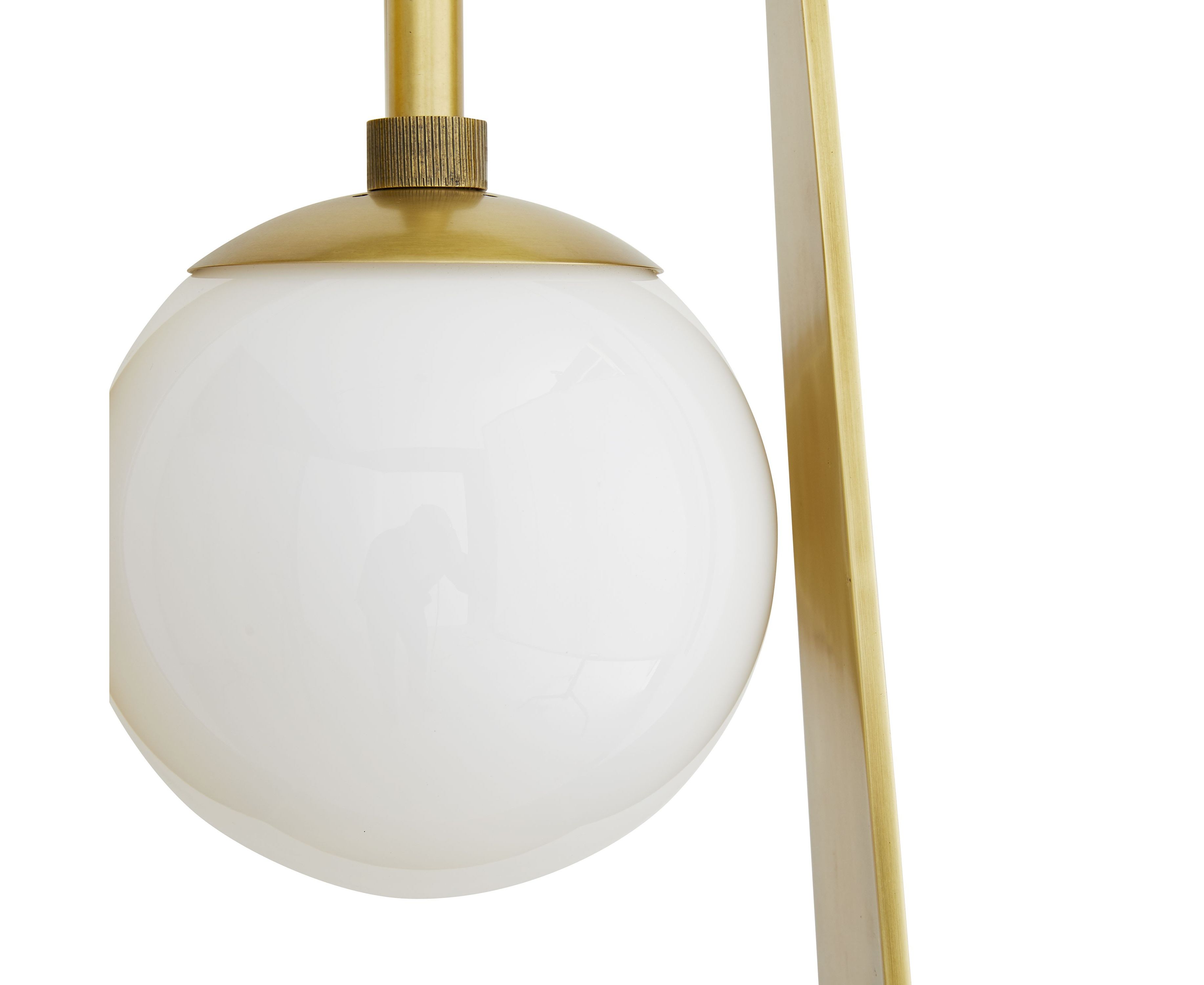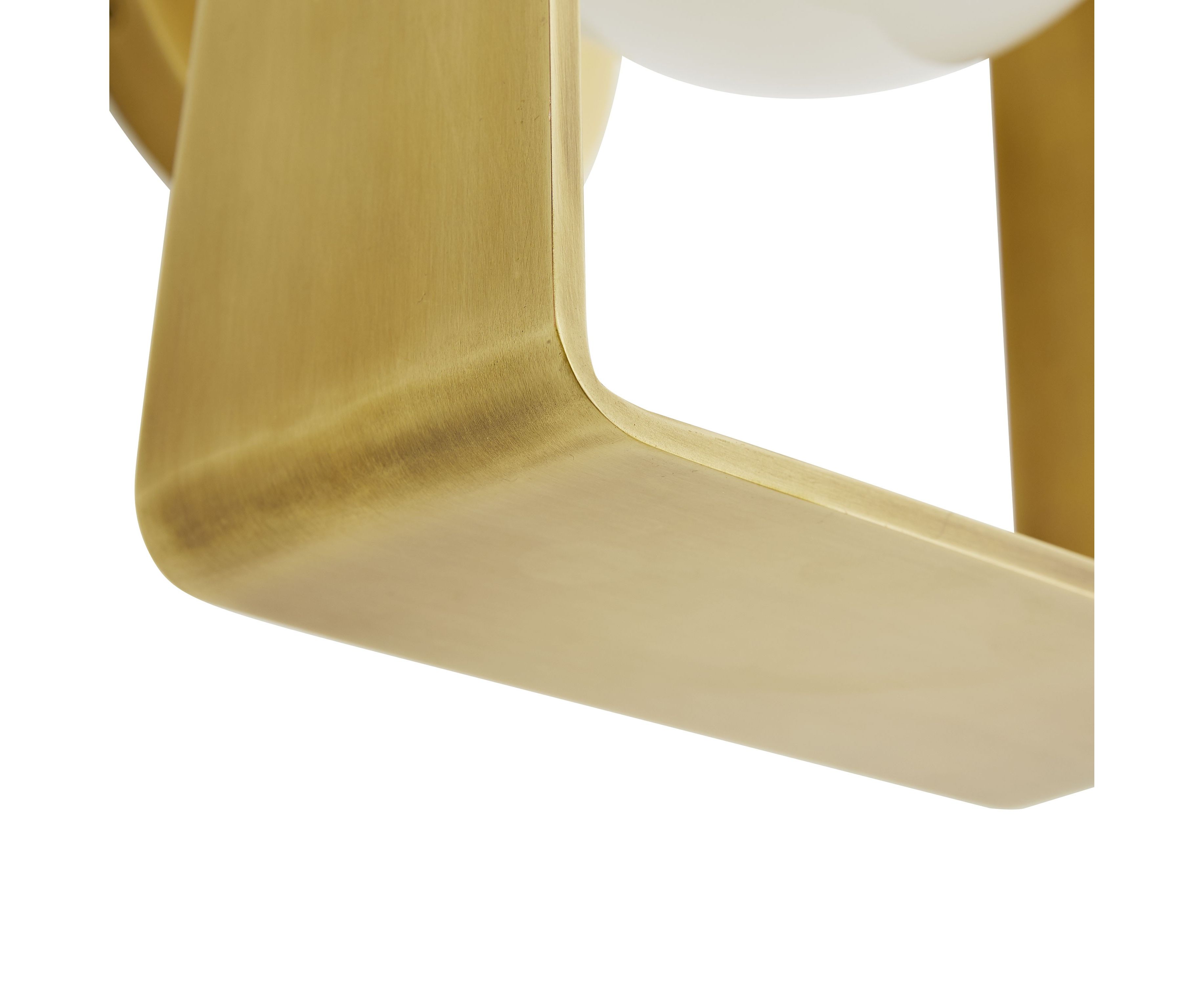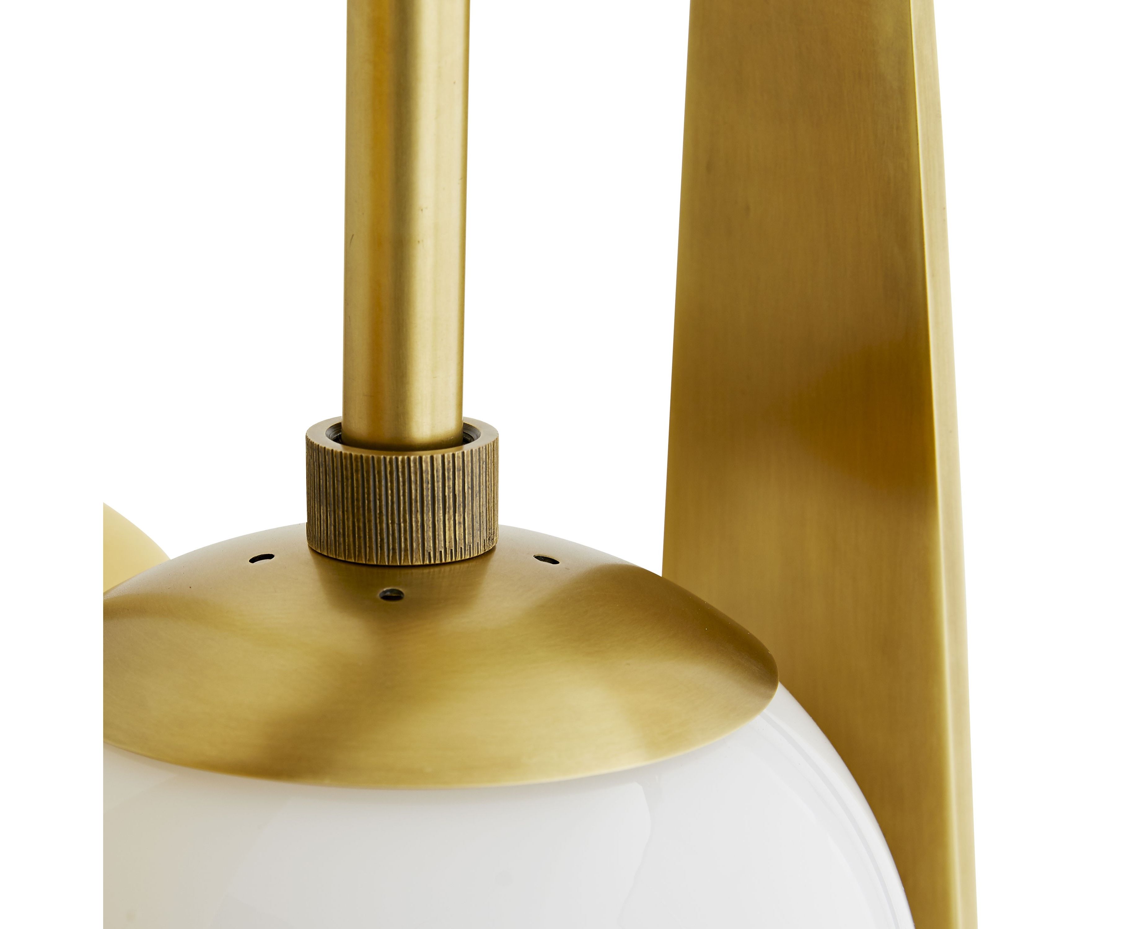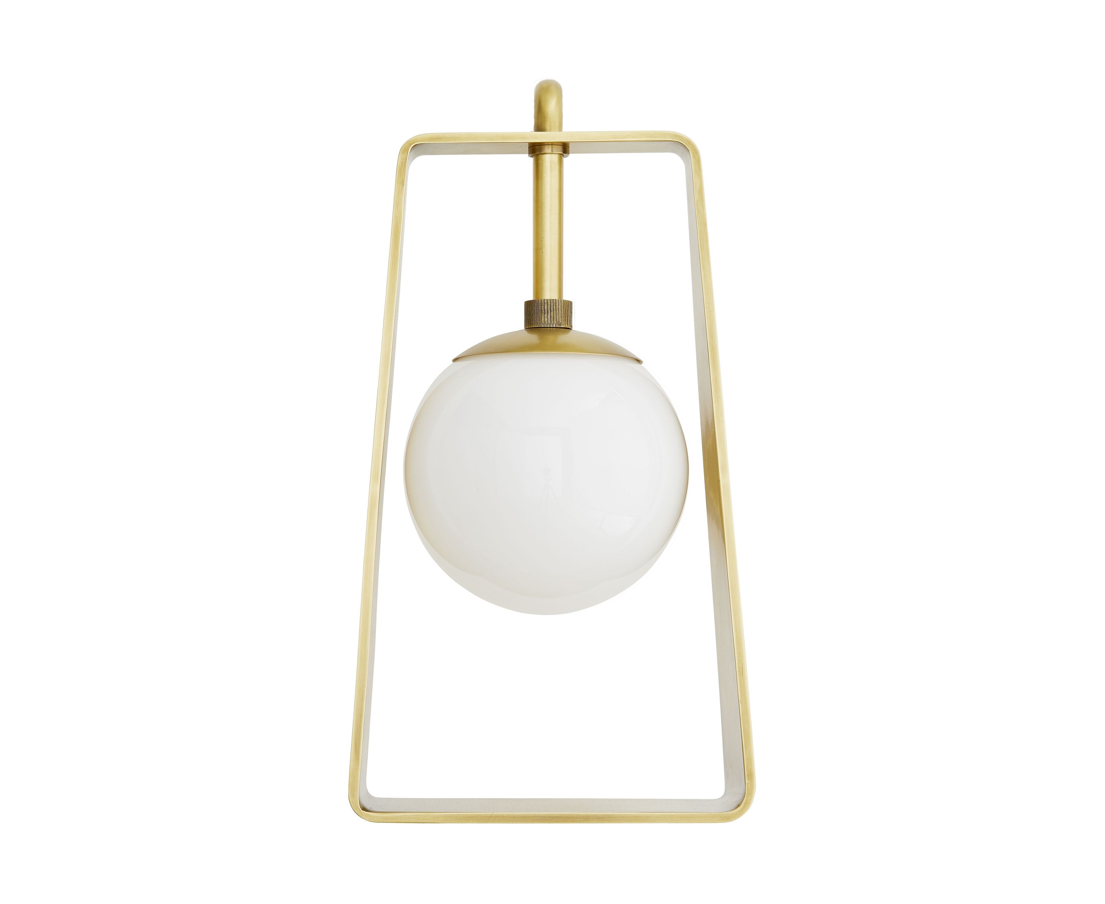 Каркасная геометрия находит баланс в пространственном дизайне с Franco. Стеклянный шар из опала подвешен на железе в античной медной отделке, которая окружает его в свободной форме. Его прямоугольный силуэт и сферический центр создают визуальный образ глубины и размеров в занимаемом им пространстве. Пара с другим для еще более динамичной привлекательности.