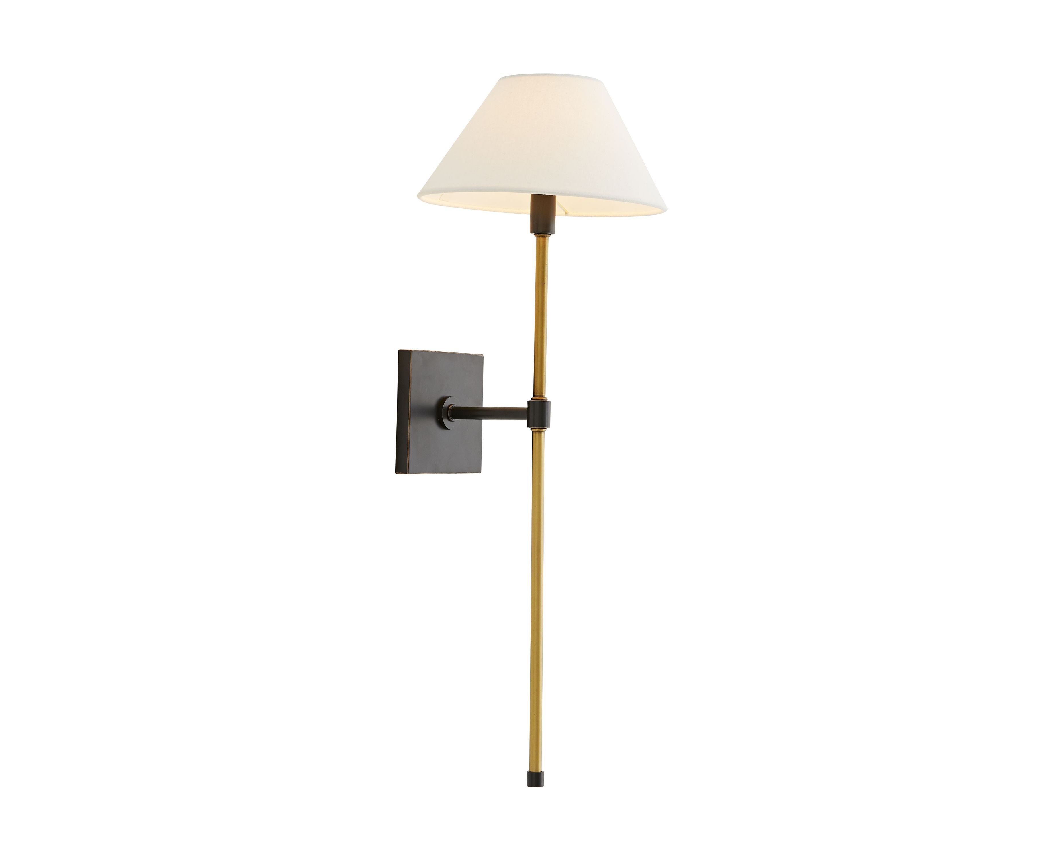 Минимальная везуально, но тяжелая по дизайну деталь, настенная версия Havana Sconce - это потрясающая смесь разнообразной отделки и деликатных материалов. Античная латунная стальная труба сменяется белым льняным абажуром с контрастными деталями из бронзы. Ее абажур мягко рассеивает свет, придавая теплое, но блестящее сияние пространству, которое он получает.