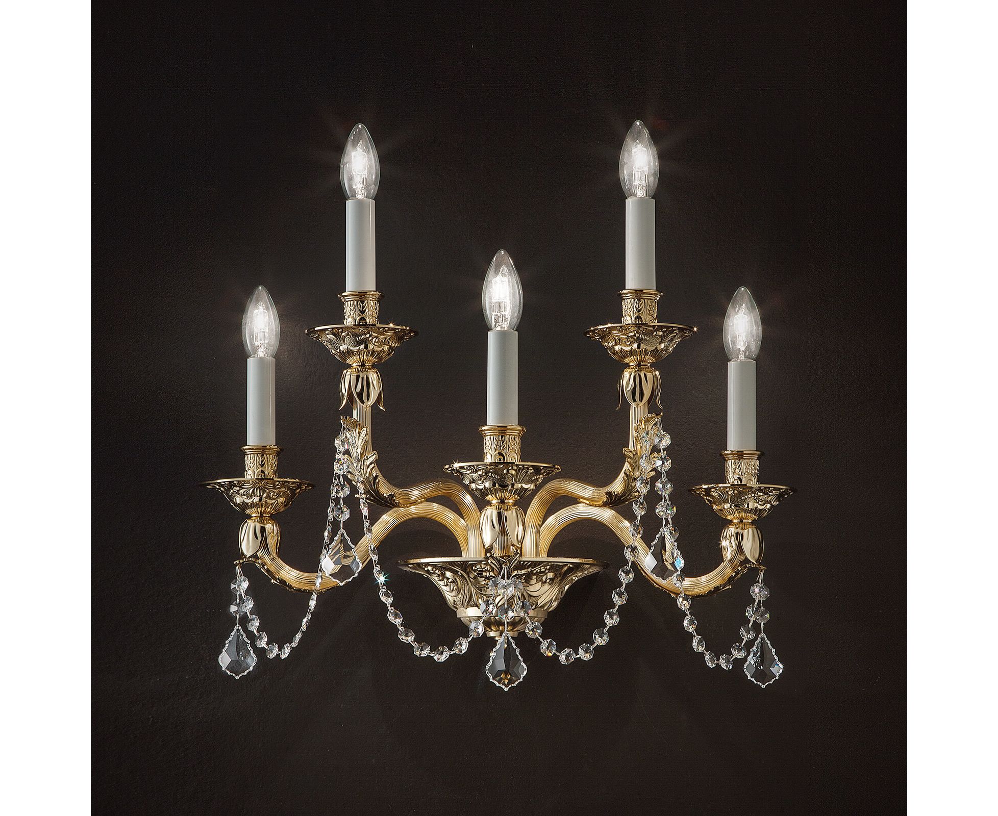 Бра из металла с золотой отделкой и подвесками Swarovski Elements. Доступны в разных размерах и цветах. Коллекция Opera Classic.