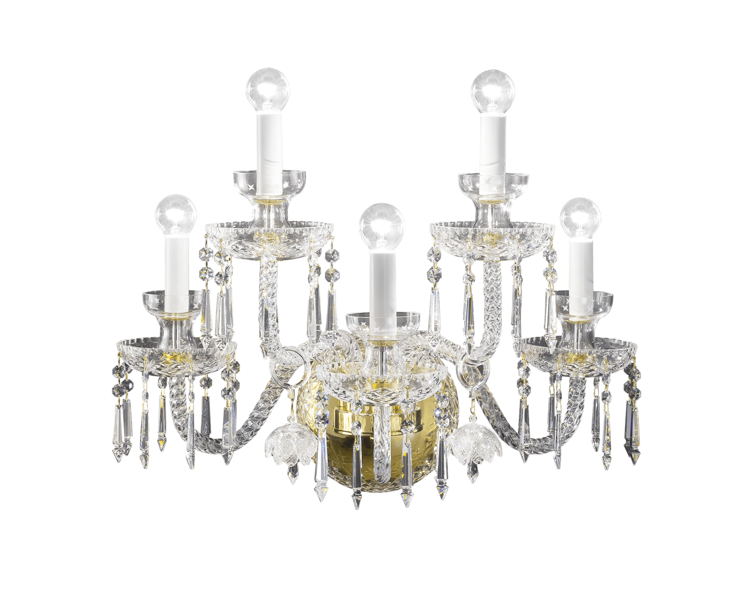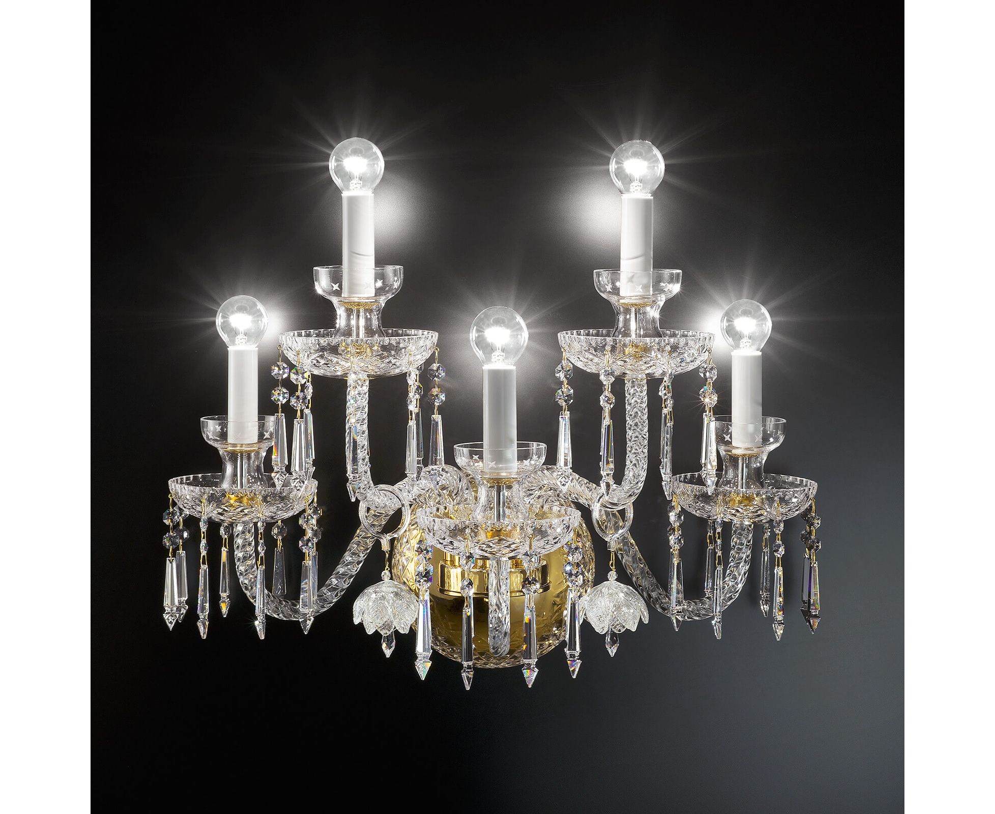 Бра из резного хрусталя и стекла, металл с золотой отделкой, подвески Swarovski Elements и декоративные стеклянные цветы. Доступны в разных размерах и цветах. Коллекция Opera Classic.