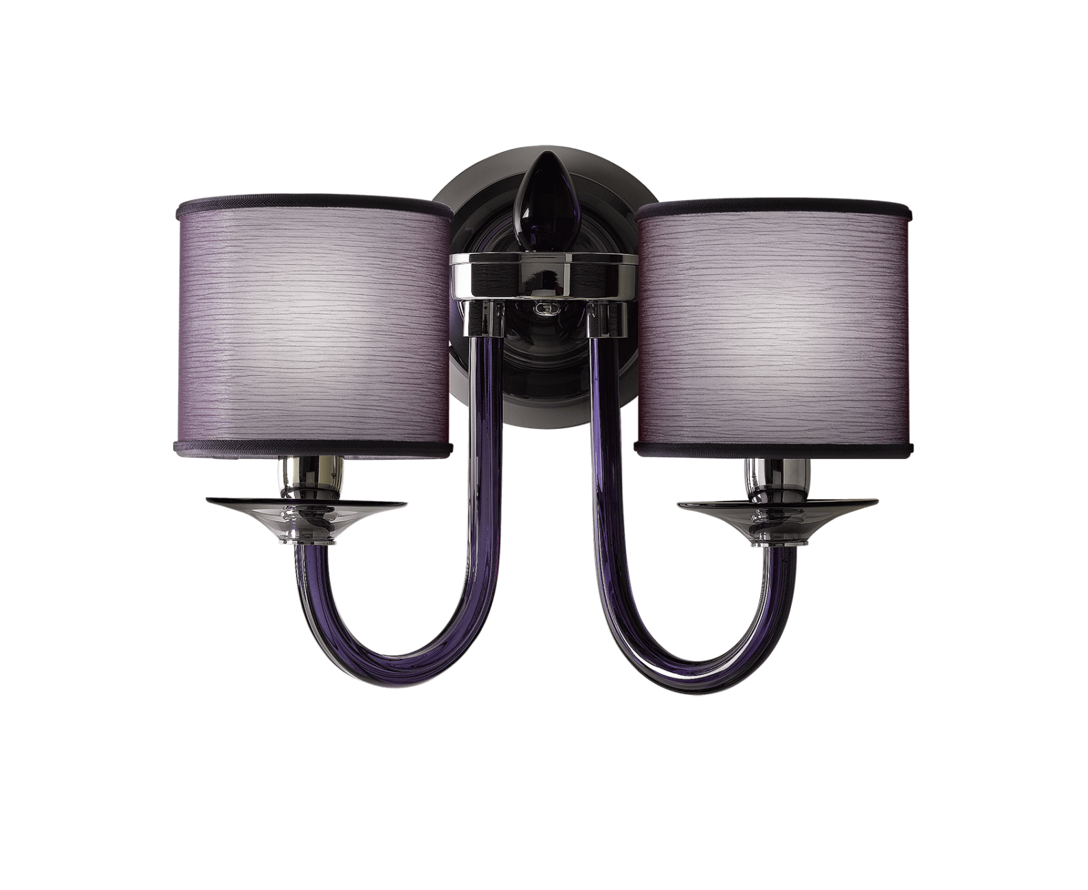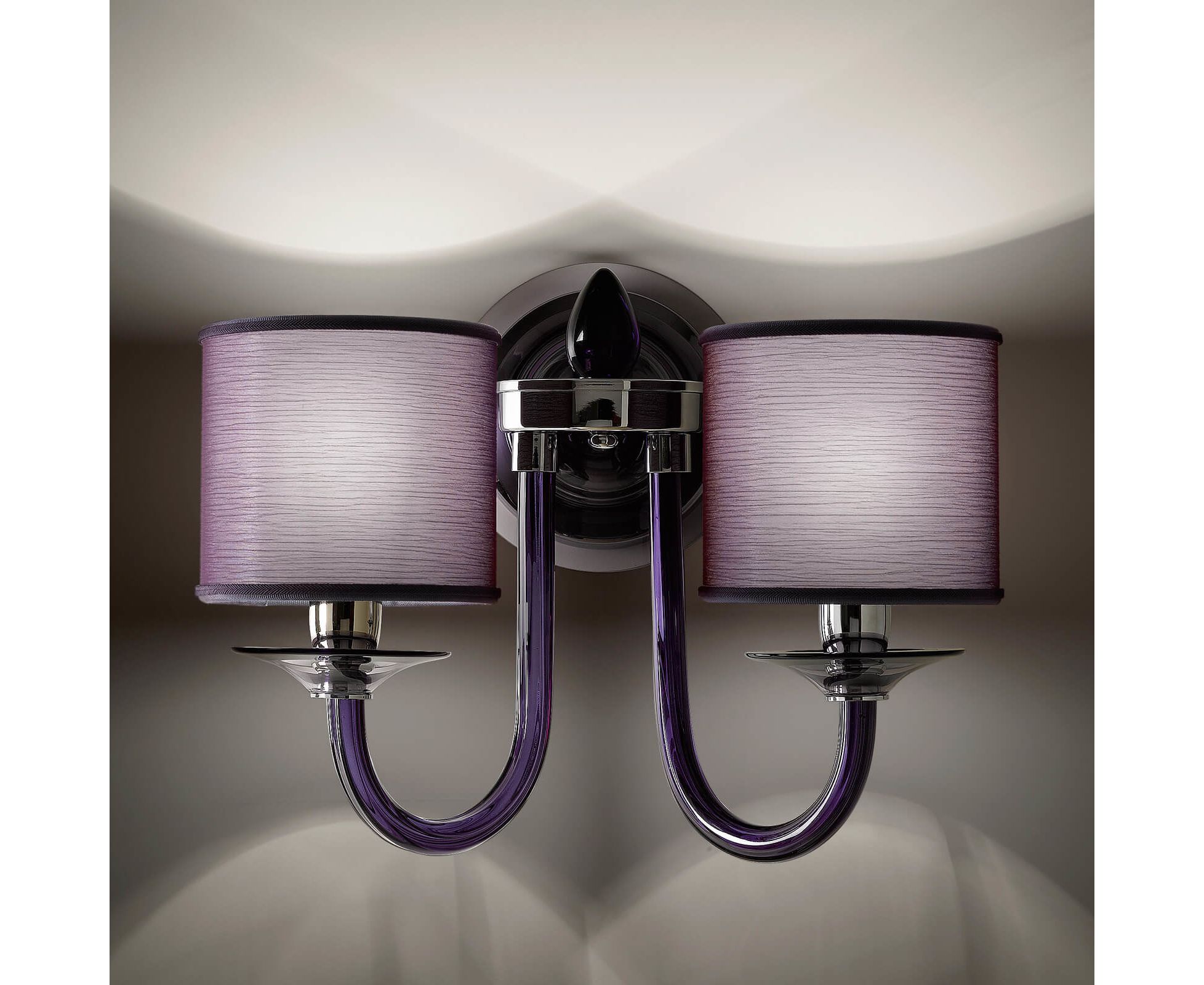 Бра из фиолетового стекла, металлический с никелевым покрытием, абажуры из фиолетовой ткани. Доступны в разных размерах и цветах. Коллекция Opera Classic.
