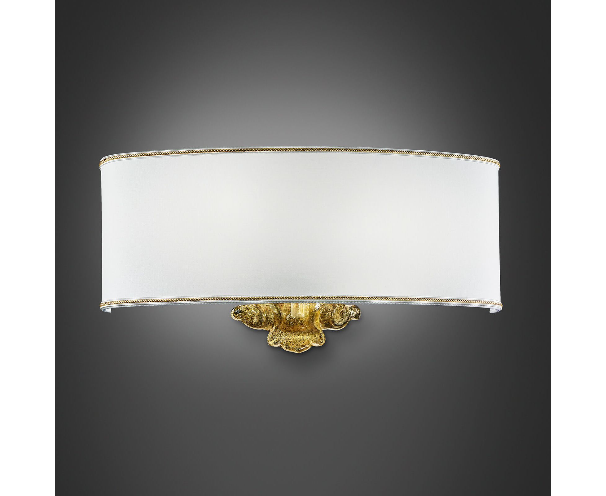 Настенный светильник с абажуром из ткани цвета слоновой кости и декоративными элементами из золотистого стекла, металлический с матовым золотом Доступен в разных цветах. Коллекция Opera Classic.