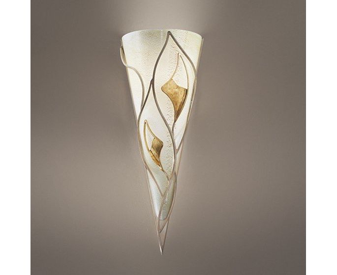 Вручную украшенное стекло заключено в этой коллекции с коваными железными крыльями, украшенными сусальным золотом. Эа коллекция дополняется потолочными лампами с овальными и круглыми формами.