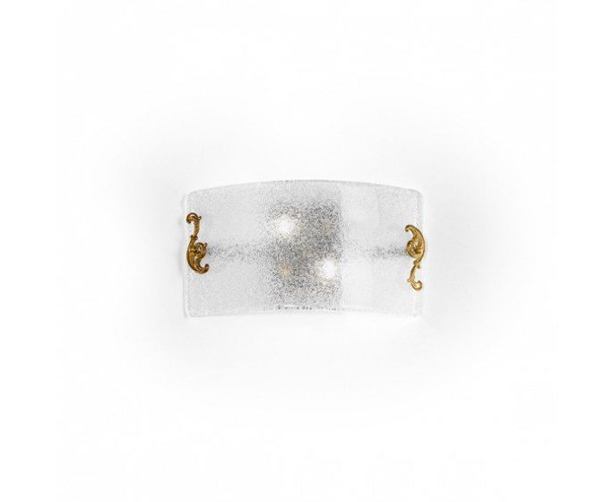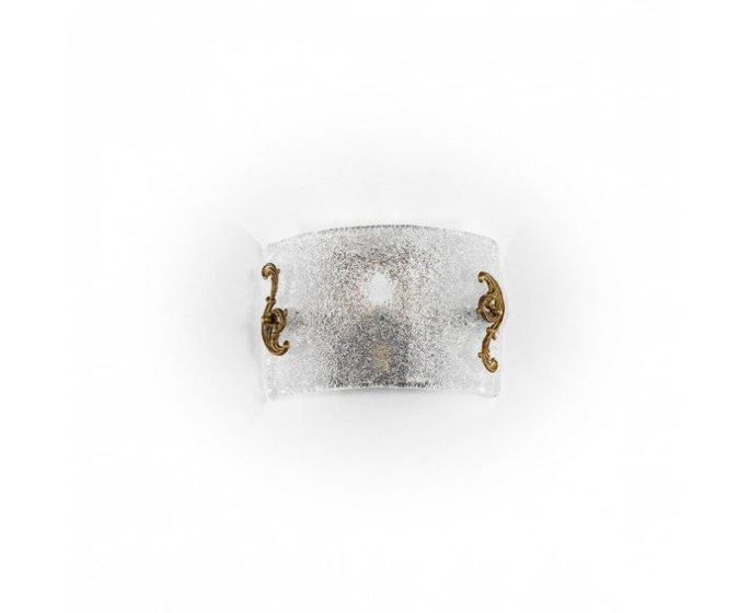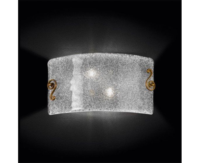 Коллекция выполнена из металла с литыми деталями и прозрачными стеклами с золотыми вкраплениями. Доступны также с абажурами плиссе.