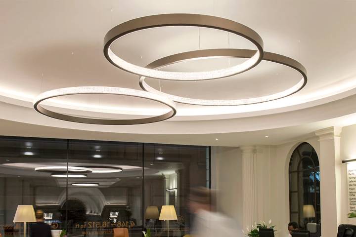Например, подвесной светильник Lahti с тонким профилем меняет влияние, которое этот подвесной светильник оказывает на пространство, оставаясь верным оригинальной эстетике простоты и элегантности. Диффузоры из кристаллического профиля дают искрящееся свечение, которое может располагаться как внутри, так и снаружи, и чередоваться между кольцами.