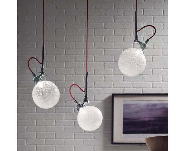 Подвесной светильник из коллекции Ice, выполненной в стиле hi-tech. Рассеиватель в виде шара изготовлен из непрозрачного стекла, предлагаемого в нескольких вариантах цвета. Лампа может регулироваться по вертикальной оси.