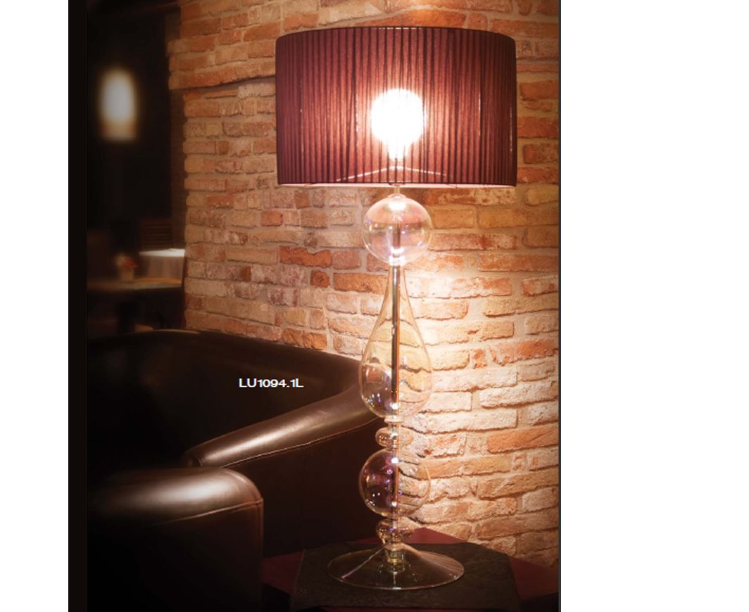 Настольная лампа в современном классическом стиле прекрасно подойдет для любого интерьера. Ножка украшена стеклянными фигурами. Очень элегантный и изысканный светильник, который станет достойным элементом любого помещения.