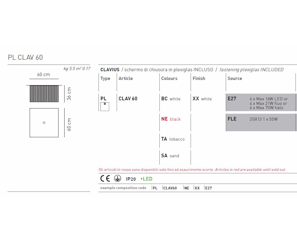 доступны версии в цвете абажура: табак (PLCLAV60TAXXE2
