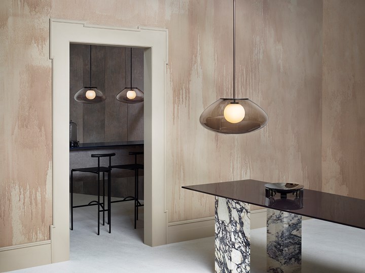 Размышляя об органическом качестве этого природного элемента, CTO Lighting создали мягкое метеорное ядро из расплавленного стекла и соединили его со вторым внешним слоем густого, галькообразного рассеивателя в тонированном нейтральном пигменте, который создает глубину света и формы. Комбинация производит многослойное стекло на стеклянной подвеске, где свет отклоняется, создавая захватывающее впечатление, где глубина цвета и света создает атмосферу утонченной роскоши в интерьере.