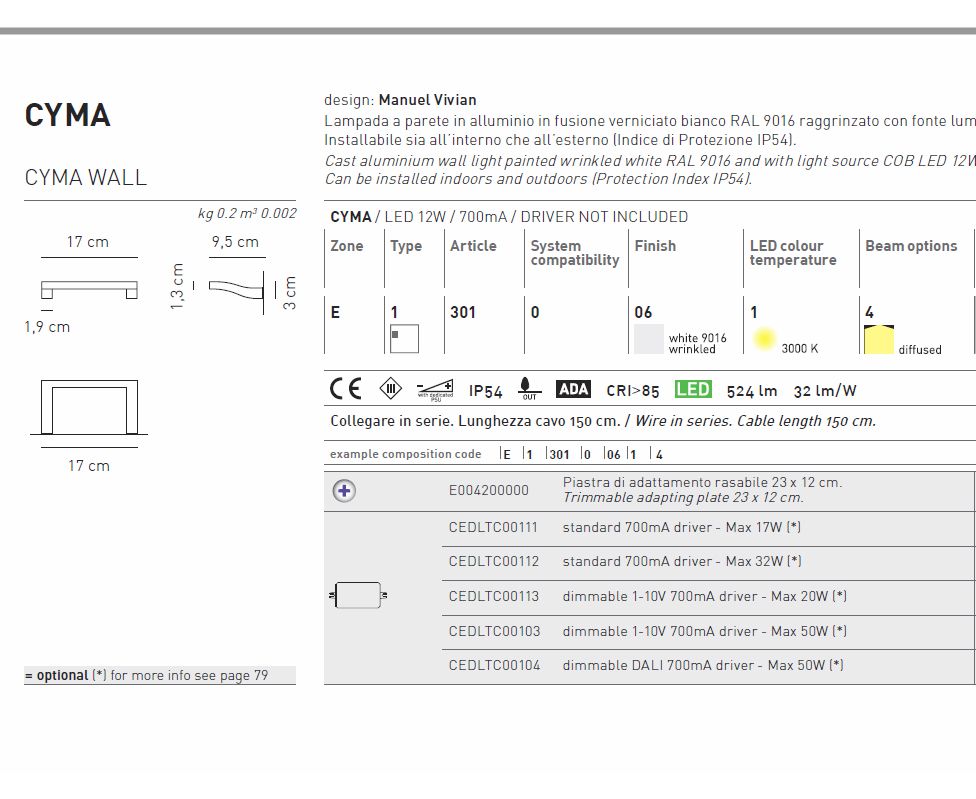 Настенный светильник Axo Light (Mind-Led) CYMA wall