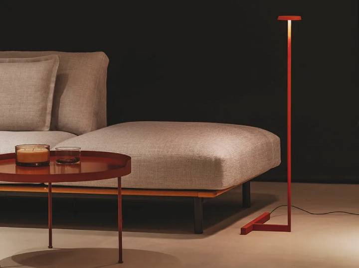Среди ламп для гостиной подвесной торшер Vibia North - идеальное решение для спокойного чаепития. Разработанный Arik Levy, это подвесной светильник и в то же время напольный, поскольку пол и потолок соединены динамичным и деконструированным профилем: конический абажур свисает с конца тонкого стержня из углеродного волокна, закрепленного на уровне пола противовесом. Угол наклона стержня регулируется и позволяет точно сориентировать светильник на журнальном столике или диване.