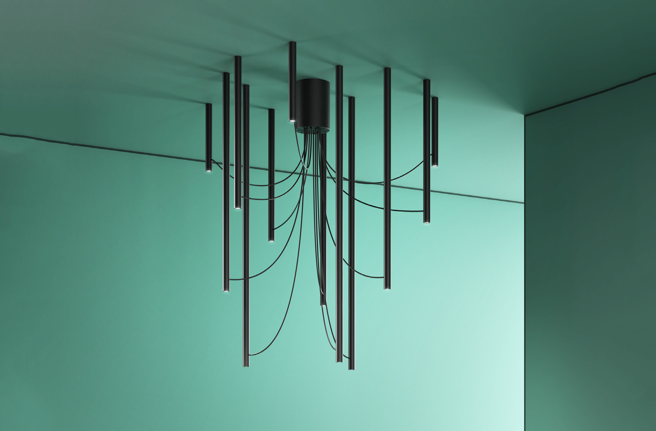 В этом и состоит главная изюминка Ари: небольшое количество графических элементов, которые придают минимализму современный поворот геометрии классической люстры, наполняя и украшая комнату легкими, прозрачными формами. Новая система для связи прошлого и настоящего. Чистый, формальный язык, который переводит и синтезирует традиционные формы.