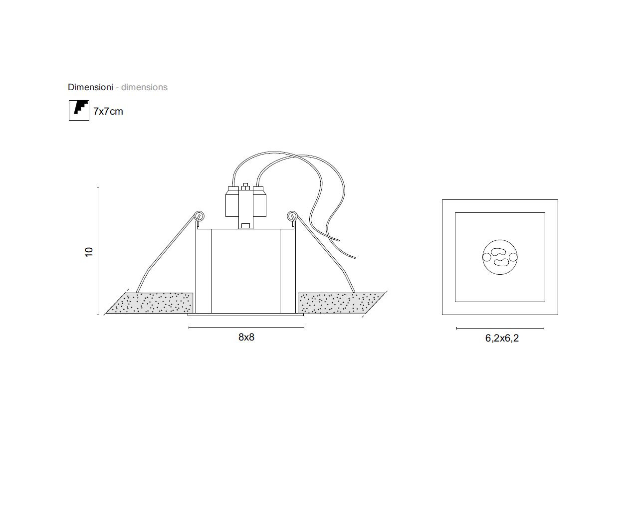 8 х 8 см, высота 10 см