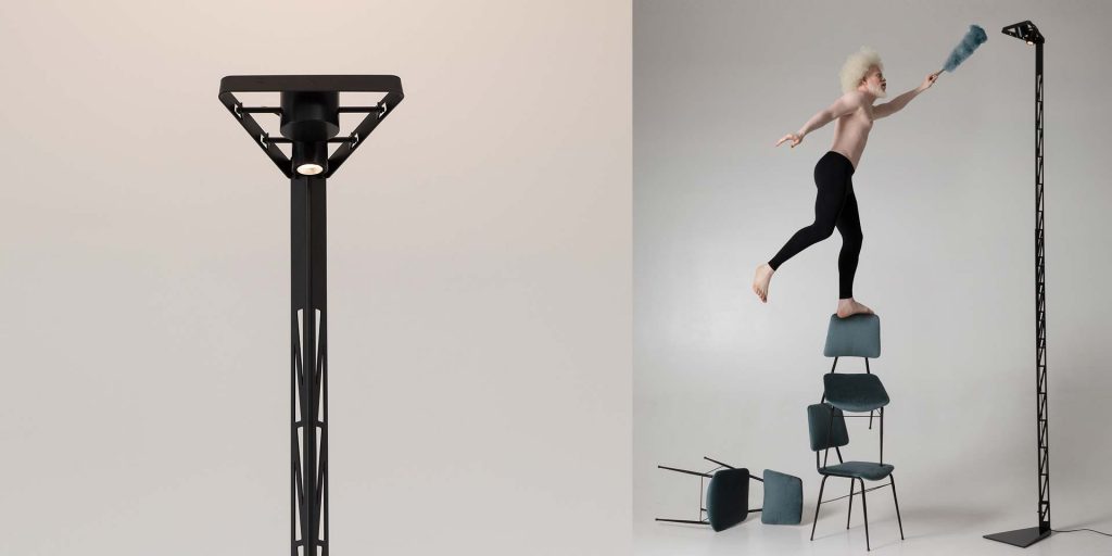 Игра слов… Вдохновленный словом Stante, причастием настоящего итальянского глагола Stare. Стант представляет собой то, что существует и остается, в то время как все остальное изменяется и развивается. Минималистичные формы и сложные технологии. Опорные балки имитируют промышленные конструкции прошлого. Модульные электронные конструкции уступают место компонентам с подсветкой (выдувным стеклянным шарам и прожекторам), которые можно свободно устанавливать и размещать, обеспечивая максимальную свободу выражения.