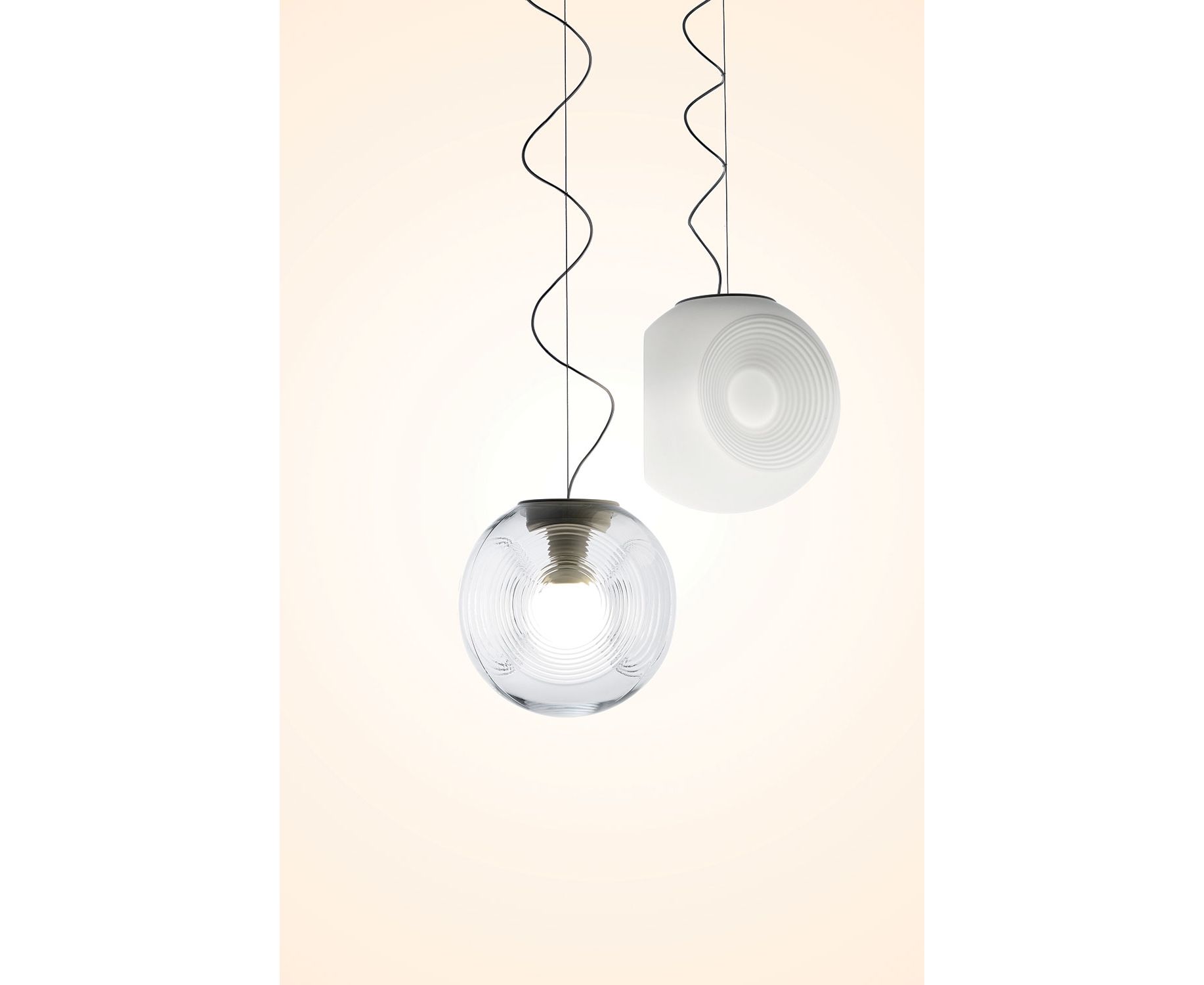 Коллекция Eyes для внутреннего освещения представлена подвесным светильником, люстрой и настольной лампой, которые доступны в двух цветовых решениях: прозрачном и матовом молочно-белом. Структура подвесного светильника может иметь матовую белую или глянцевую медную отделку, в то время, как структура люстры и настольной лампы отделана матовой белой краской.