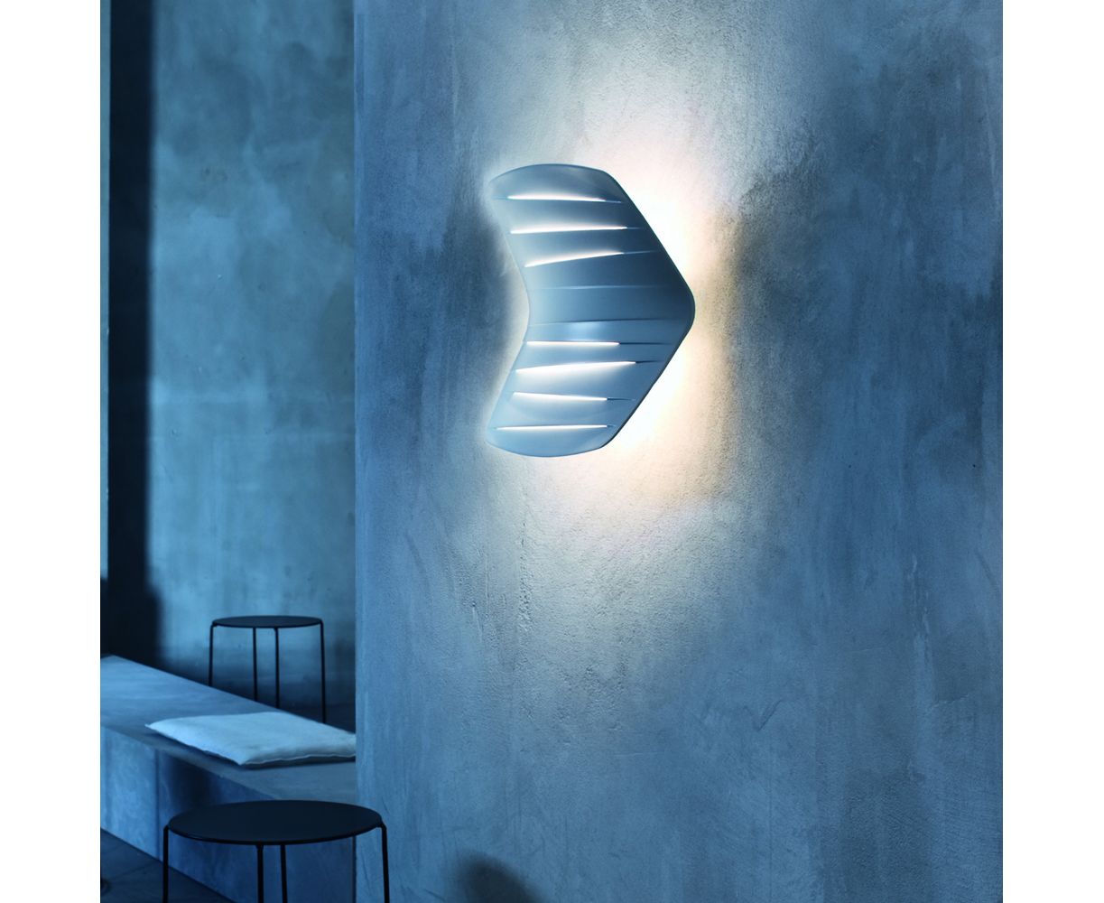 Внутренняя скульптура, которой можно полюбоваться и которая направляет теплый луч света. Светильник Flip имеет двойственную природу, но в то же время он имеет уникальное визуальное оформление, состоящее из непараллельных линий, которые горизонтально нарезают пластик и создают органическую форму, организуя освещение и создавая визуальный эффект движения. Красивый даже когда выключен, Flip является универсальным объектом, который может быть использован как бра или прикроватная лампа для чтения.