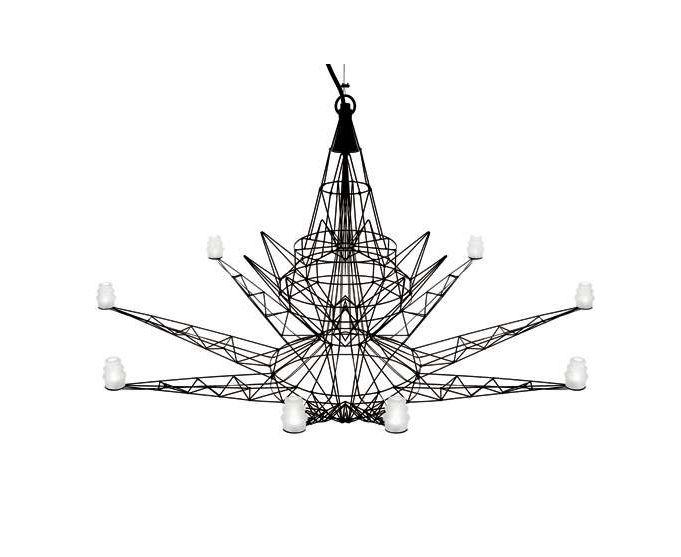 Геометрический силуэт, который напоминает трехмерное развитие кристалла. Ручная работа, светильник сварен из сотни металлических элементов, образующих легкий силуэт. Современный дизайн от Тома Диксона получился чем то средним между инновациями и традициями. Его сильная личность и размеры повышают его декоративную привлекательность, что делает его подходящим для помещений больших размеров.