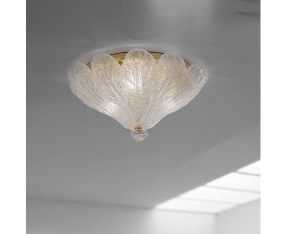 Листья из выдувного стекла и детали отделки из золота 24k превращают эту линию бра и потолочных светильников в центральный элемент любого элегантного интерьера.