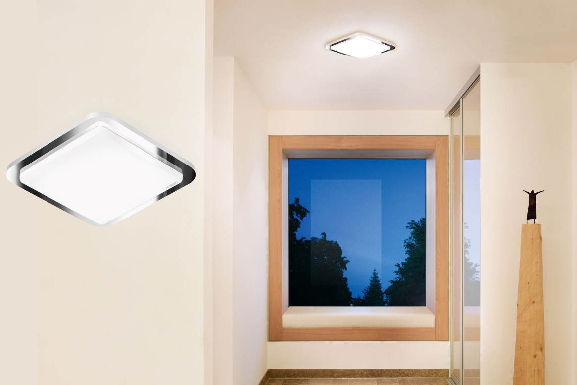 STEINEL HF сенсорная лампа RS LED D1 с хромированной металлической рамой идеально подходит для коридора, холла, лестницы и ванной комнаты. Светодиодная система STEINEL LED, 11 Вт с 600 люмен, 360° ВЧ-датчик с выходом 3-8 м, бесшумное включение, с настраиваемой подсветкой.