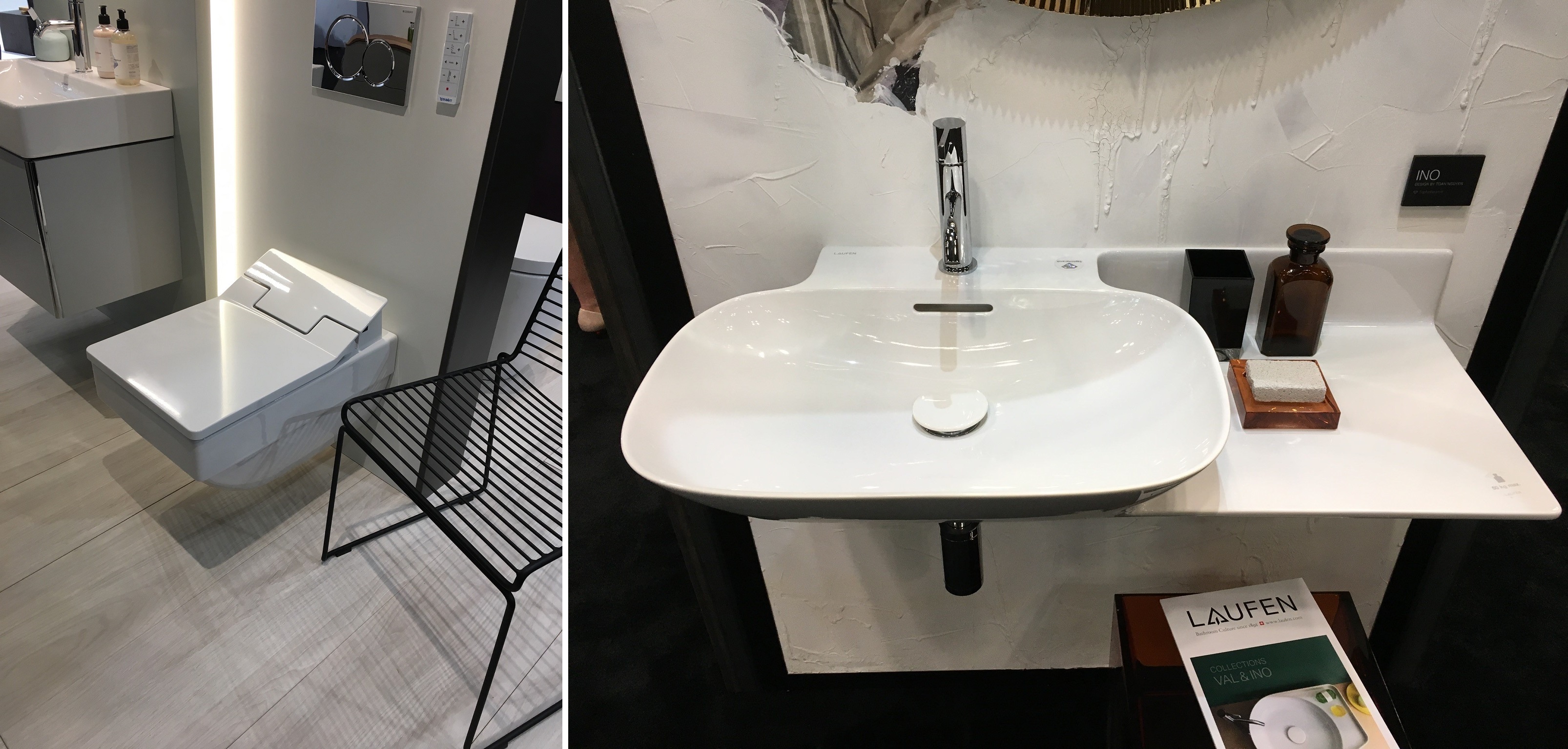 В ванной комнате хороший дизайн часто означает простоту обслуживания и легкий доступ, а также хорошую отделку. В этом духе дизайнеры ванных комнат сводят к минимуму дорожки душевых дверей или вообще снимают эти двери. И, все больше и больше, туалеты, раковины и шкафы висят на стене, сохраняя пол свободным и легко моющимся.