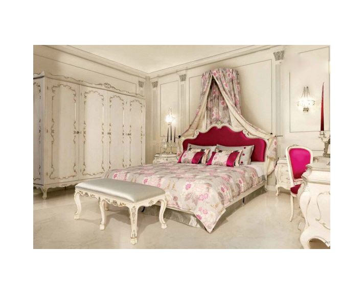 Мебельный гарнитур для спальни. Модели выполнены в классическом стиле. Фигурные резные элементы придают мебели элегантности, изысканности и торжественности. В гарнитур входят: кровать, стол, стул, зеркало, прикроватные тумбочки, шкаф, пуф.