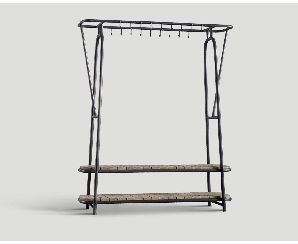 Appendiabiti (etagère) in metallo finitura ferro brunito, piani in legno vecchio riciclato