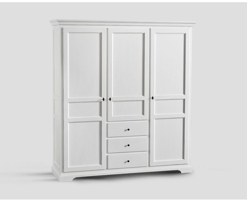 Armadio 3 ante e 3 cassetti, realizzato in legno di colore bianco.