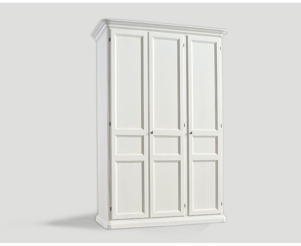 Armadio 3 porte, finitura laccato bianco vissuto, interni in legno di Tanganica finitura naturale