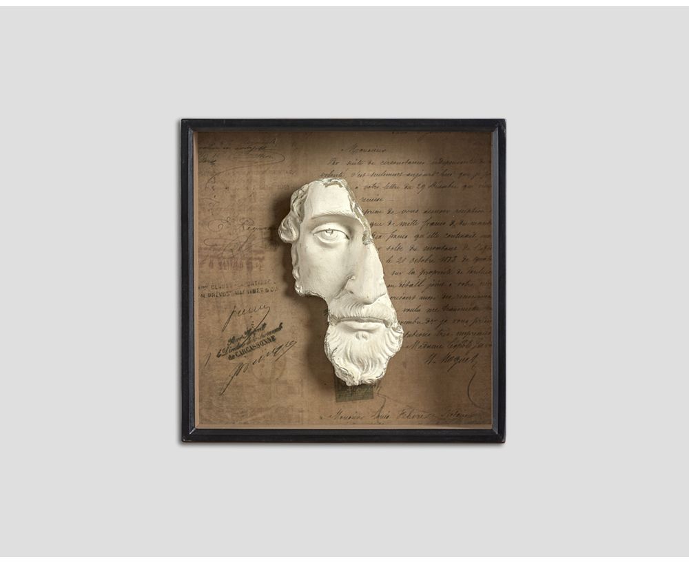 Bacheca quadrata in legno con soggetto in agglomerato di resina naturale