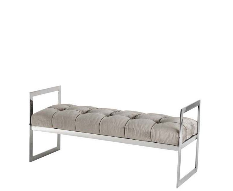 Банкетка на металлическом каркасе. Мягкое сиденье с мебельными пуговицами.