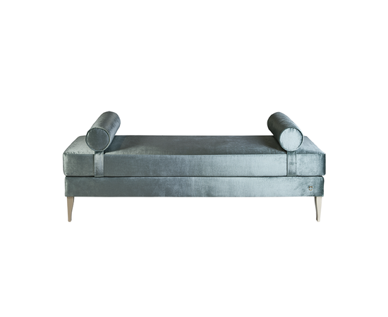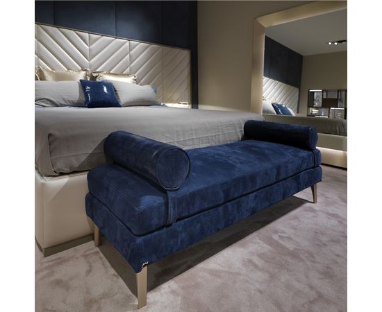 Elegance Bench и Elegance Chaise Lounge - это мягкие кресла с элегантным дизайном. Идеально подходит для входов, жилых помещений, гардеробных и спален. Конструкция выполнена из многослойной древесины с вспененным полиуретановым наполнителем, обитым полиэфирным волокном. Они украшены цилиндрической подушкой, а металлические ножки имеют гальваническое матовое золото. Скамейки Elegance и Elegance Chaise Loungue можно персонализировать с использованием широкого ассортимента элегантных тканей, тонкой кожи и нубука.